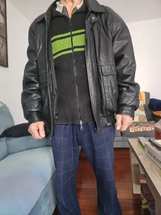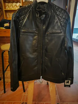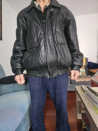Chollo. Chaqueta de pie de vacuno 100% para hombre. Sin señal de uso. Nueva. - Material: Cuero 100% vacuno - Color: Negro. - Cierre de cremallera. Barcelona