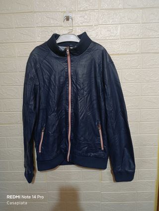 Chaqueta de cuero estilo bomber. - Cuello y puños de canalé. - Cierre de cremallera frontal. - Bolsillos laterales con cremallera.