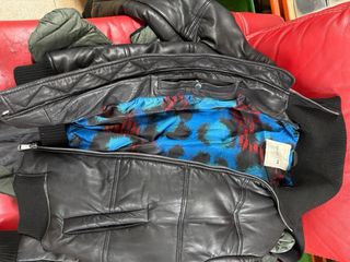 Cazadora bomber de cuero con un diseño moderno y atemporal. Perfecta para añadir un toque de estilo a cualquier conjunto. - Cuello redondo. - Cierre de cremallera frontal. - Puños y bajo elásticos. - Forro intacto, bolsillo interno descosido.