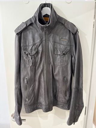 Preciosa chaqueta de cuero de la marca Superdry, modelo Ryan Jacket en color gris y talla XXL, con corte entallado. De tacto suave, cuenta con un cierre frontal de cremallera y cuatro bolsillos delanteros. Forro interior acolchado y puños con cremallera. En perfecto estado, sin apenas uso y guardada siempre en armario tapada con funda. Recogida en mano en Sabadell o posibilidad de realizar envíos a cualquier punto. Se ruega la misma seriedad que se ofrece, no se escuchan ofertas absurdas.
