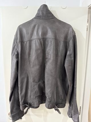 Cazadora de cuero seminueva, con muy poco uso. Un diseño clásico y versátil. - Confeccionada en cuero de alta calidad. - Detalle de pespuntes contrastados. - Múltiples bolsillos frontales.