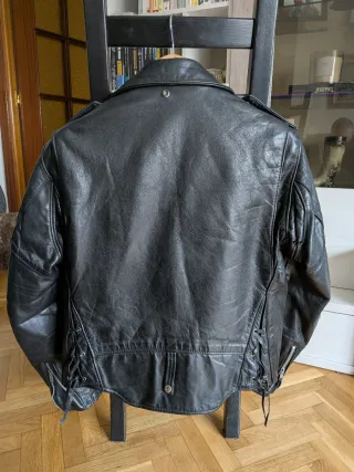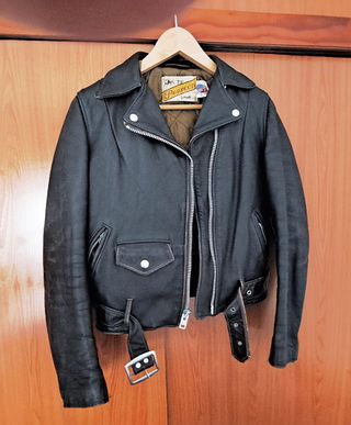 Cazadora de cuero Schott en muy buen estado. Tiene el desgaste justo para que luzca preciosa. Le falta un corchete para el ajuste de los bajos.