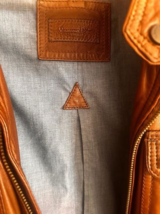 Cazadora bomber de cuero genuino marrón de Massimo Dutti. Cierre central con cremallera, cuello con botón a presión, dos bolsillos frontales con solapa, bolsillo lateral con cremallera y forro interior azul claro. El cuero está bien conservado y en buen estado general. Presenta un pequeño remiendo en el lateral interior en el cuero de un brazo, visible en las fotos, que no afecta al exterior ni al uso. Ideal para looks casual con vaqueros o chino. ✅ Marca: Massimo Dutti ✅ Material: Cuero genuino ✅ Color: Marrón ✅ Corte: Bomber ✅ Forro interior azul Nueva costo 380€