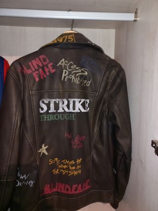 Cazadora de cuero talla s con dibujos tanto al frente como a la espalda. No la he estrenado, completamente nueva