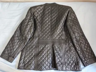 Elegante cazadora acolchada de mujer, confeccionada en cuero. - Diseño acolchado con rombos. - Cierre de cremallera frontal. - Bolsillos frontales con solapa.