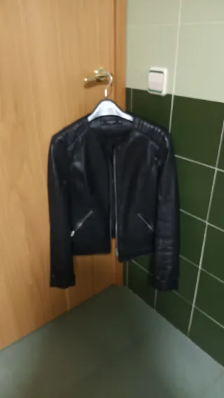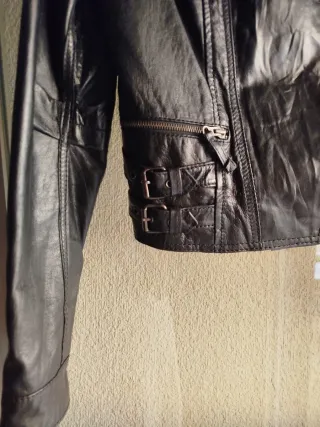 Cazadora de cuero de Zara. - Cierre de cremallera. - Bolsillos con cremallera. - Cinturón. - Solapas. Envios solo por Wallapop