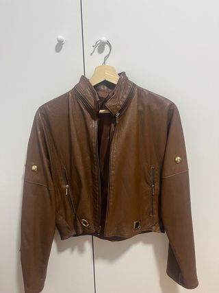 Cazadora de cuero marrón
