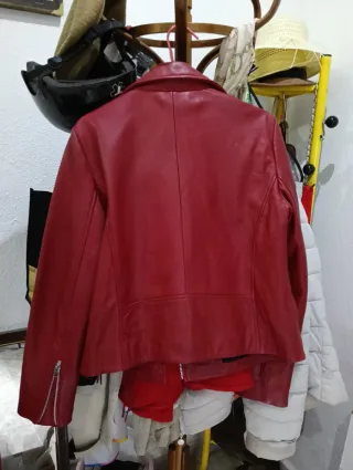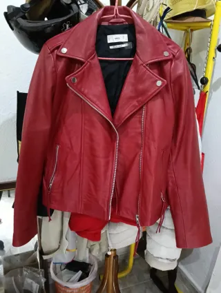 Cazadora cuero Mango rockera roja Talla M