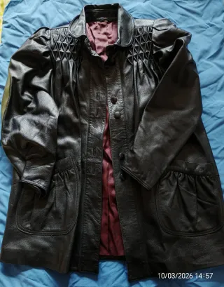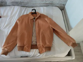 Cazadora de cuero natural bovino 100% para mujer, talla 38 (equivale a una S en España). No la he usado mucho, está en perfecto estado. La piel es muy resistente y puede durar toda la vida. Tiene efecto ante muy suave.