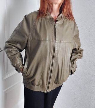 Cazadora cuero vintage verde oliva