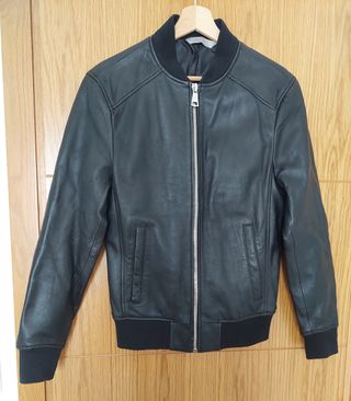 Cazadora de cuero negra. Zara. Hombre. Talla s. Poco uso