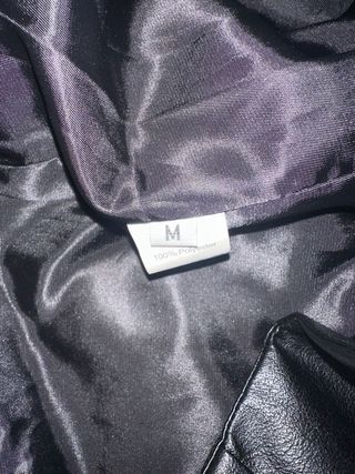 Cazadora de cuero nueva color negro aunque en las fotos parece marrón Tiene el cuello y los bordes con piel gris muy suave y se cierra con cremallera y botones que no se ven Tiene 4 bolsillos interiores