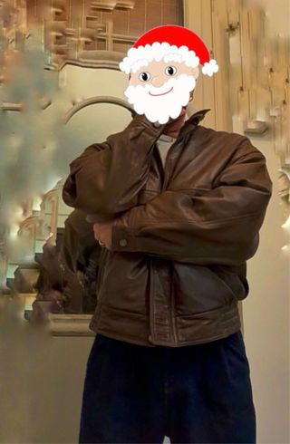 Cazadora de cuero marrón de estilo vintage/ oversize. Presenta un diseño clásico y atemporal. Cuero 100%, Completo de piel de oveja ! Forro de viscosa / tailla 50