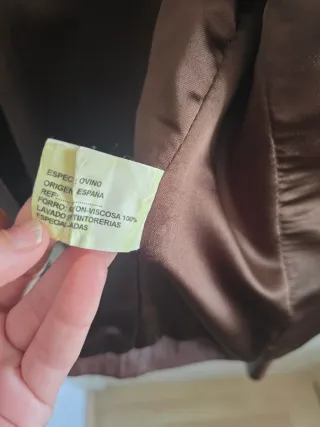 Cazadora de moutón con capucha. En Barcelona centro, no hago envíos. - Diseño con forro de borreguito. - Cierre de cremallera. - Puños y bajo con detalle de borreguito. - Ribetes de cuero en contraste.