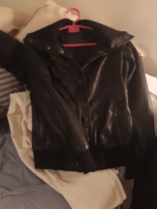 cazadora negra de cuero real valorada en 100 euros solo se ha usado una vez