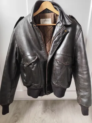 Es el modelo icónico famoso por Brad Pitt en la versión de cuero suave. Esta nueva pero tiene un fallo de fabrica en un hombro que se muestra en la penúltima foto. La vendo por talla incorrecta, el fallo del hombro es difícil de apreciar. Importante: ver medidas en la última foto. Es una S grande, de hecho el maniquí es una M...Chaqueta-cazadora- Black friday nuevo precio blouson-piel-peau-cuero-cuir-veste-giubbotto-giacca-pelle-jacke-jasje.