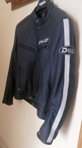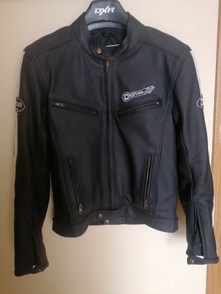 Se vende cazadora de cuero Dexter color negro y lista blanca en la manga. La piel es gruesa y de calidad. Cremalleras y botones muy bien rematados. Lleva forro térmico interno desmontable para invierno. Talla M. Comprada en motoblouz. El precio nueva en la web es de 220€. Se vende por 120€ no negociable porque tiene dos usos y está como nueva.