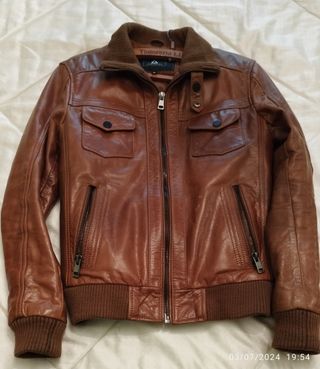 Cazadora 3/4 piel original. Talla S Slim, aun siendo una S slim, da bien para una M, casi L no muy grande