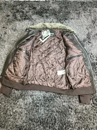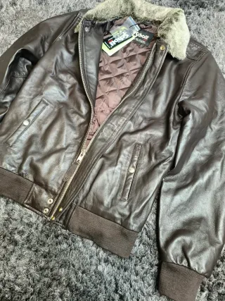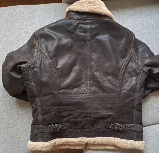 Cazadora estilo aviador de la marca JODHPUR. Usada 3 veces. Solo recogida. - Material exterior de cuero real. - Forro interior de pelo sintético. - Cuello con solapas de pelo. - Cierre de cremallera frontal. - Bolsillos delanteros con solapa.