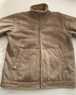 Cazadora de ante en color beige, con forro interior de pelo. - Cierre de cremallera. - Dos bolsillos delanteros. - Cuello alto. - Forro borrego En muy buen estado. Muy pocas puestas.
