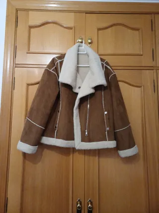 Cazadora ZARA efecto piel con borrego. Talla M