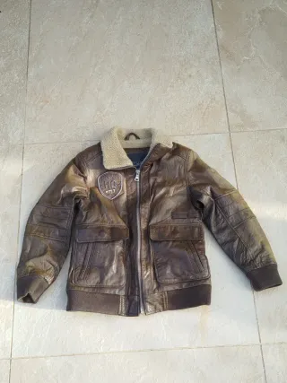 Cazadora de piel marron estilo aviador en muy buen estado
