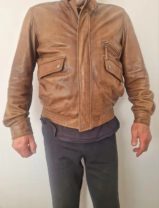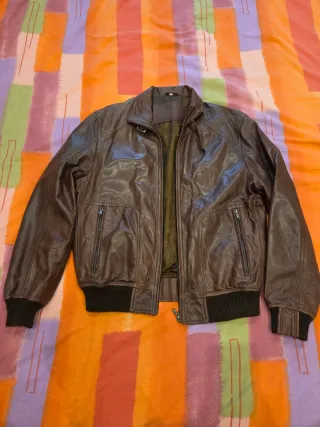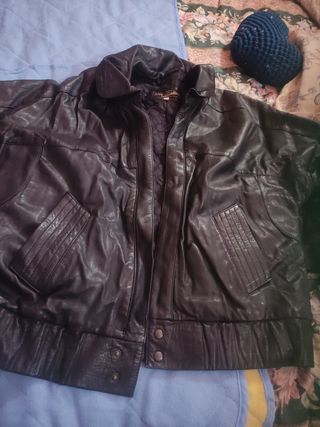 Cazadora bomber vintage , ya no sé encuentran en tiendas . Piel de calidad.es una 48 , pueden usarla hombre o mujer. Si necesitas medidas o más fotos no dudes en escribirme