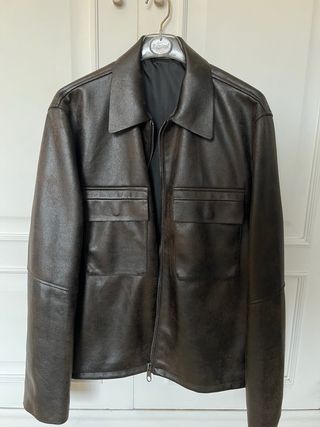 Cazadora de piel de Zara Man, en perfecto estado, casi nueva. - Cierre de botones a presión. - Dos bolsillos en el pecho con solapa. - Cuello camisero.