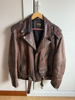 Se vende cazadora de piel en color marron de la marca Nice London. Talla 46. Cremalleras y forro en perfecto estado.