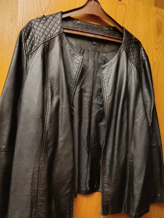 Cazadora de piel sintética con un diseño moderno y elegante. - Cuello redondo. - Cierre de cremallera. - Bolsillos delanteros con cremallera. - Detalle de costuras en los hombros.