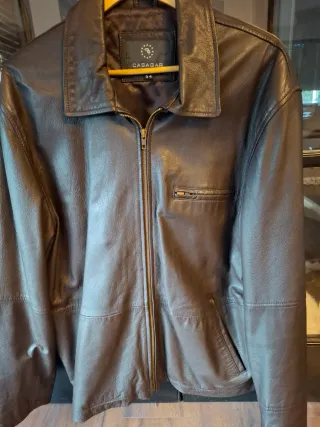 Cazadora de piel para hombre Talla XL En muy buen estado, muy poco usada - Diseño clásico. - Cierre de cremallera y solapa con corchetes