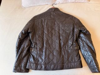 Cazadora de piel para hombre de la marca Springfield. Totalmente nueva. Solamente usada 2-3 ocasiones. - Diseño tipo biker. - Cuello mao con cierre de botón. - Cremallera frontal. - Bolsillos con cremallera.