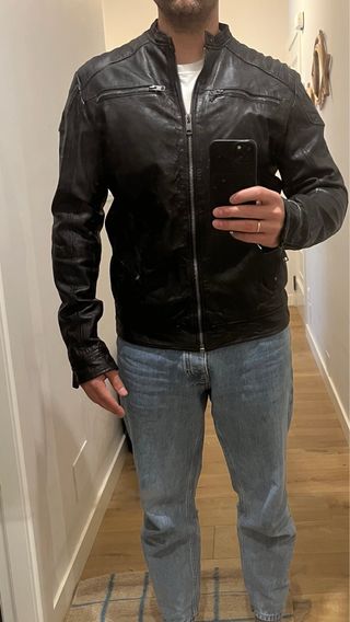 Como un guante. Una cazadora inolvidable. Queda muy bien con vaqueros. Muy buen tacto. Buen estado.