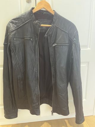 Cazadora de piel auténtica de la marca Zara. Un clásico atemporal para cualquier ocasión. - Diseño elegante y versátil. - Cierre de botones. - Bolsillos frontales. Precio nueva 299