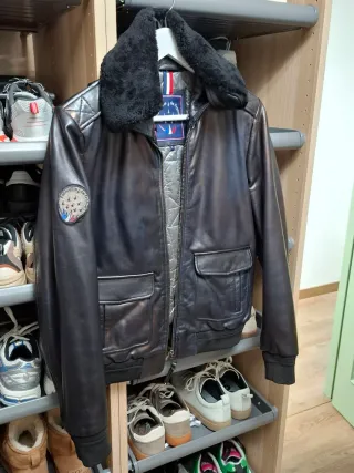 una cazadora espectacular comprada en el corte ingles por 270€. Piel autentica. Usada apenas 3 veces. Es de la talla 48 que es un como una S. Yo mido 1.76m con 70kg y me queda perfecta. Piel de calidad, cómoda, diferente y el cuello de pelo se puede quitar quedando una cazadora de piel pura sin adornos. Se siente la calidad nada mas verla, pero cuando te la pones ya sabes aue llevas algo muy muy bueno. Es una de las marcas de El Corte Inglés. Sin duda, un sello de calidad.