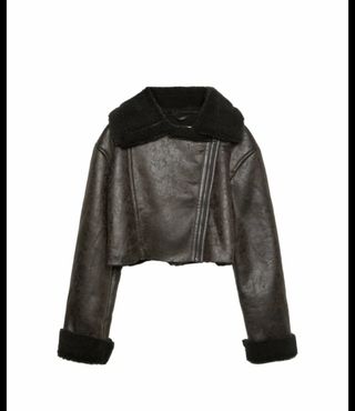 Cazadora estilo aviador de Zara, con un acabado que imita la piel. - Cuello de pelo sintético. - Cierre de cremallera. - Cinturón con hebilla.