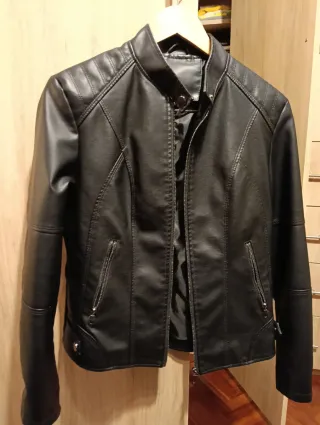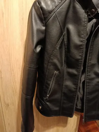 Cazadora efecto piel negra Talla M