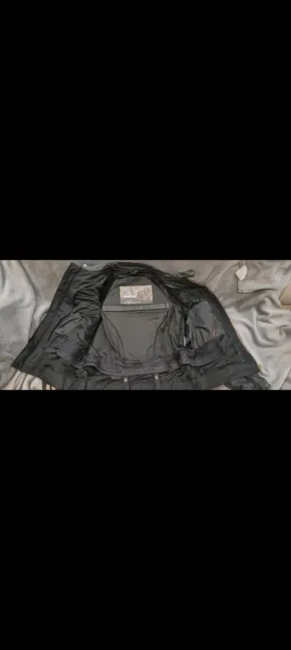 Cazadora de piel negra con un diseño moderno y elegante. Está en perfecto estado, casi nueva. - Cierre de cremallera. - Bolsillos frontales. - Forro interior estampado.