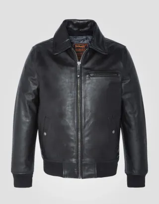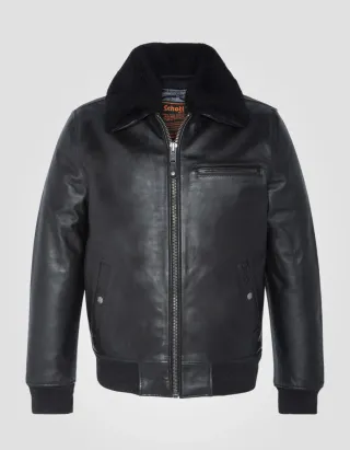 Cazadora estilo piloto de Schott NYC, sin estrenar - Confeccionada en piel de vaca gruesa - Cuello desmontable de pelo auténtico de oveja en color negro - Chaleco interior acolchado desmontable - Cierre de cremallera. - Bolsillo con cremallera en el pecho. - Bolsillos laterales con botón y cremallera