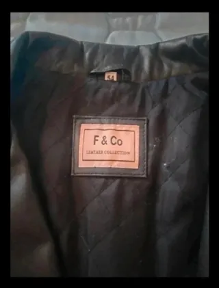 Talla 54. Tiene partes desgastadas, como se ve en algunas fotos. El bolsillo izquierdo está descosido por dentro, como se ve en la última foto. 😬