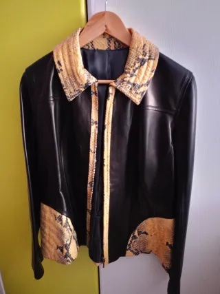 Cazadora Piel negra Motivos Serpiente
