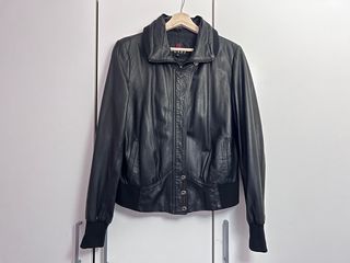 Cazadora de piel negra de segunda mano