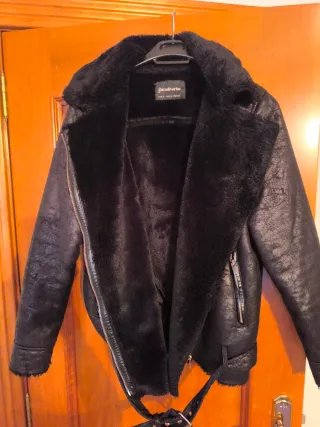 Cazadora de piel sintética con forro de borrego. Está como nueva, usada en dos ocasiones cuando ful a Londres. Talla S. La piel está perfecta, es calientita y muy cómoda. La vendo porque tengo mas como esta y no la uso. - Diseño de cremallera frontal. - Bolsillos con solapa. - Puños con detalle de cremallera.
