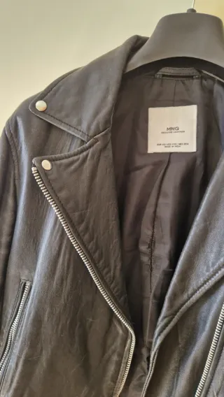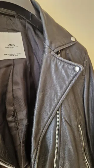 Cazadora estilo motera con acabado en imitación piel MANGO - Cierre de cremallera. - Bolsillos frontales con cremallera. - Solapas de muesca. - Puños con cremallera. -solo tres puestas ha tenido, como nueva, muy cuidada