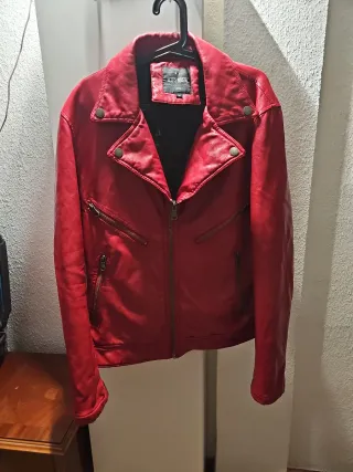 Cazadora roja de puel (no efecto piel). Talla M pero sirve para talla S tambien. De Easy Wear de El Corte Ingles.