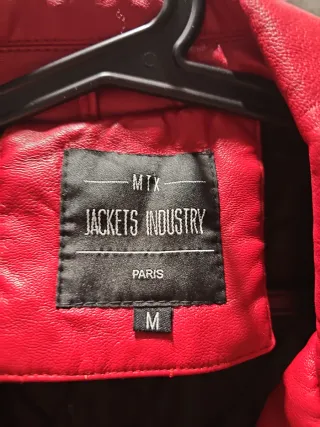 Cazadora efecto piel Roja, muy buen tacto, viene forrada, cremalleras en puños, es entallada,Es XL, pero equivale a una talla 38