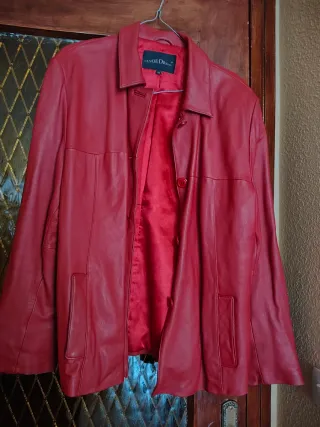 Cazadora de piel autentica en color rojo. Muy buena calidad y en muy buen estado.