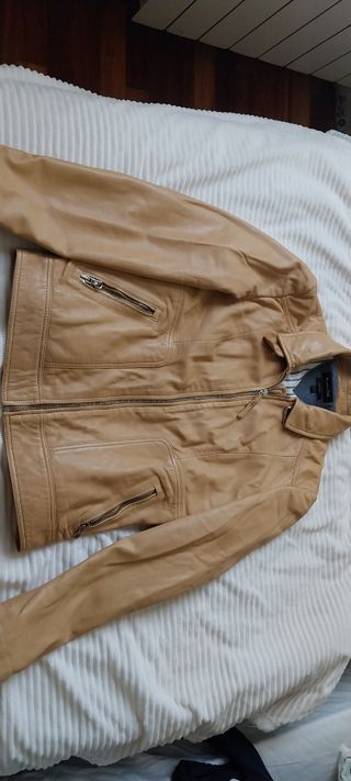 cazadora de piel marrón de Massimo Dutti. Talla M. muy bien estado