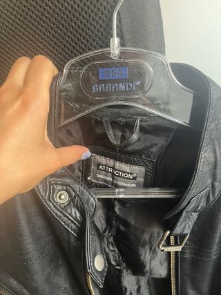 Pone que es una XL pero talla una 38-40 aproximadamente. Tiene algunas marcas en la espalda y por dentro la tela rota como se ve en la foto. Es piel de verdad