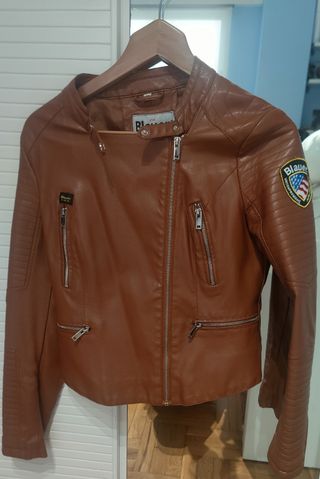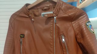 CAZADORA de piel sintética. Color azul. En perfecto estado